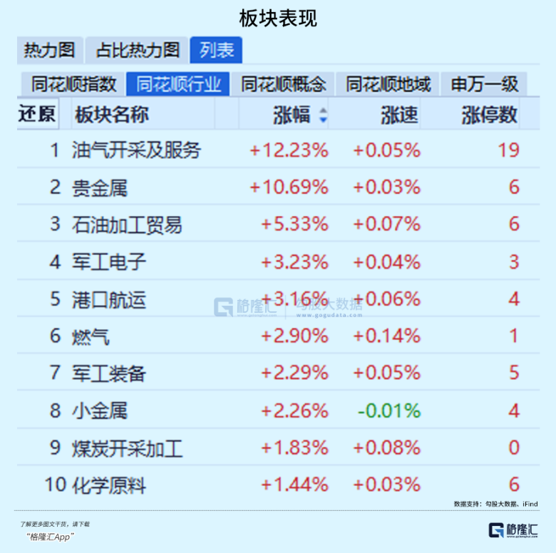 板块上涨理由简单直接,就是对中东紧张局势的情绪释放。
