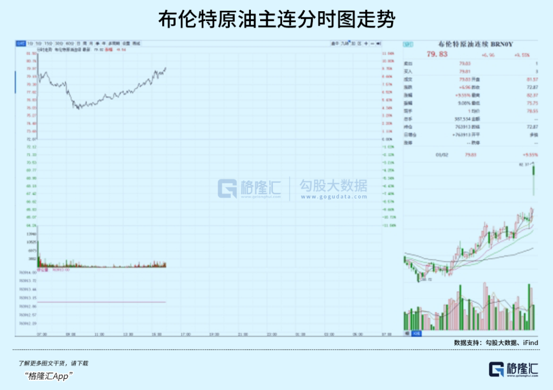 截至发稿,布伦特原油报79.97美元/桶,涨幅为9.72%。