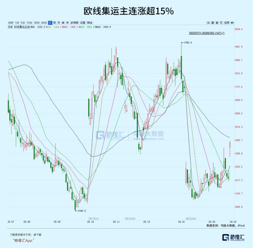 但短时间内,油价较2月低点累计最高拉升也近20%。相比之下,从1月份以来,欧线集运今天才得到一次比较大幅度的爆发。