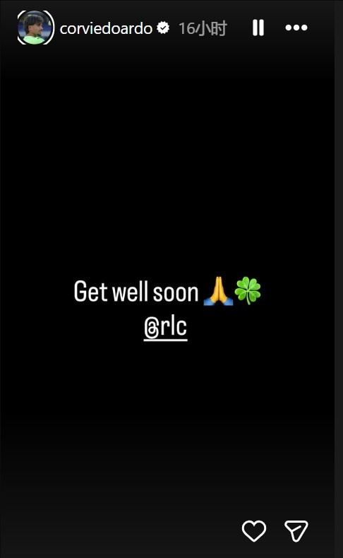 科尔维在社交媒体上写道:“早日康复配资网前十名,奇克🙏☘️”