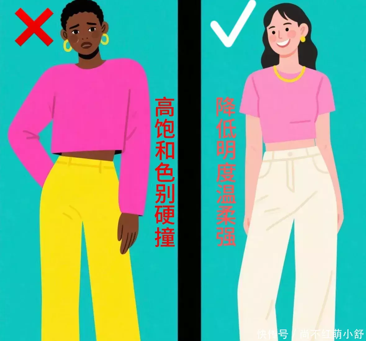 配色是穿搭的隐形门槛。选对高级感翻倍,选错再贵的衣服也像地摊货——正如有人吐槽的:“红绿灯一样的撞色,实在扎眼。”高饱和撞色不仅视觉冲击强,还容易显得杂乱,千万别采用高饱和度色彩撞色,谁穿谁翻车~